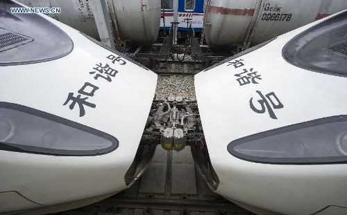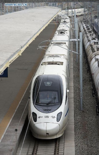 A CRH (China Railway High-Speed) train is ready for a test run at Urumqi railway station in Urumqi, northwest China's Xinjiang Uygur Autonomous Region, June 10, 2014. The trial run for the first high-speed railway in Xinjiang Uygur Autonomous Region started on June 3, marking a countdown to formal operations by the end of the year. (Xinhua/Jiang Wenyao)