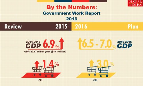 Chinese Premier Li Keqiang delivers a government work report during the opening meeting of the fourth session of the 12th National People's Congress at the Great Hall of the People ...