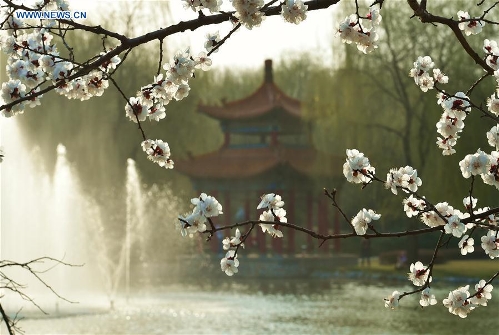 Apricot flowers bloom in N.China