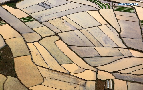 Farmers work in fields in Jiangping ...