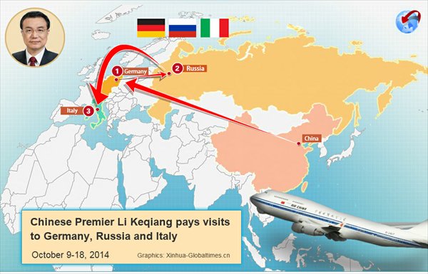 Chinese Premier Li Keqiang returned to Beijing on Saturday morning after visits to Germany, Russia, Italy and the UN Food and Agricultural Organization (FAO) headquarters.