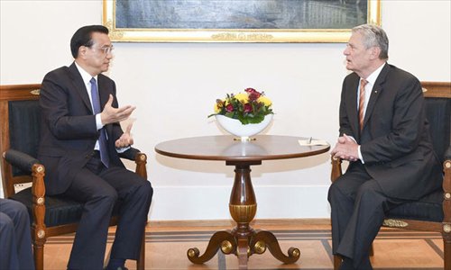 Chinese Premier Li Keqiang met in Berlin Friday with German President Joachim Gauck and expressed his wish that the two countries strive for a better future of their all-dimensional strategic partnership.