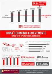 The National Bureau of Statistics released a series of data Tuesday on China's economic and social development since the 18th National Congress of the Communist Party of China (CPC) held in 2012.