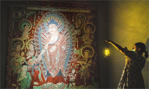 An exhibition of cultural relics discovered in the South China Sea kicked off at the Mogao Grottoes in Dunhuang, Northwest China's Gansu Province, on Saturday. This is the first cultural dialogue between these two key parts of the Land and Maritime Silk Road.