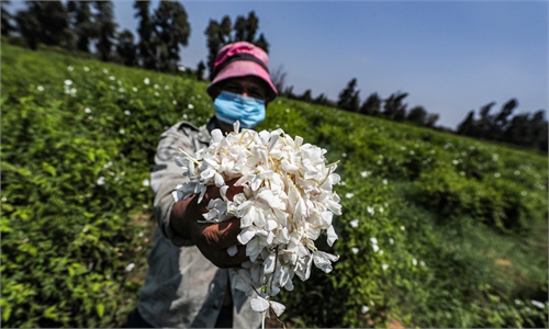 At midnight, Eman Mehanna switches on her headlamp and begins her day's work picking jasmine flowers, as their powerful fragrance wafts far across the fields in Egypt's fertile Nile Delta.