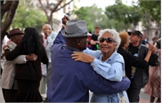 Glowing in a yellow lace dress, Carolina Salinas fans herself languidly while the band burns through the sultry rhythms of the “danzon,” Cuba's national dance.