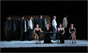 On the stage, four women wearing differently-styled black dresses sit in front of a table. The women, three of whom are sisters, recall their beautiful memories of their time in Moscow. They smile as they talk about their desire to return to the lovely city, which leads to the audience to think that perhaps their dream will come true.