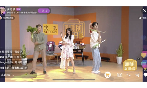 Actress Annie Yi, who has grown in popularity after appearing on entertainment show Sisters Who Make Waves, joined Chinese streaming platform Sohu TV's live streaming channel to sell products together with the site's CEO Zhang Chaoyang on Monday.