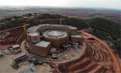 Zimbabwean President Emmerson Mnangagwa on Monday expressed satisfaction with progress that has been made in the construction of the new Parliament building in Mt. Hampden on the outskirts of the capital Harare.