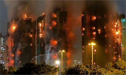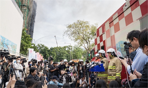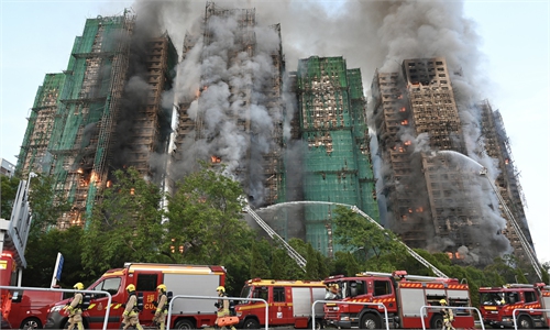 Regarding the fire that broke out at Wang Fuk Court, Tai Po in the Hong Kong Special Administrative Region (HKSAR) and resulted in at least 13 fatalities and 28 injuries, the HKSAR Chief Executive John Lee said on Wednesday that “I am deeply saddened and extend my heartfelt condolences to the families of the deceased and those injured," adding that multiple departments are fully committed to firefighting, rescue operations, and medical treatment, according to a statement sent to the Global Times.