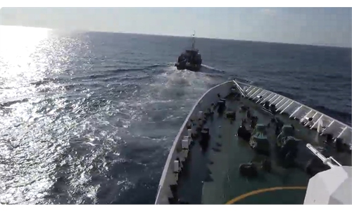 In the blue waters of the South China Sea, a China Coast Guard (CCG) vessel was seen cruising at high speed when, from its port bow, a Philippine ship altered course to the right, cutting across the front of the Chinese vessel at close range, disregarding the risk of a potentially fatal collision. The scene comes from exclusive footage obtained by the Global Times on Sunday of the incident that occurred on Friday.