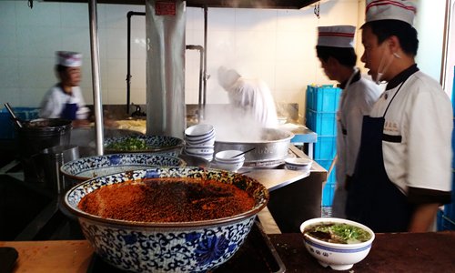 Lanzhou-based noodle restaurant cooks prepare to make noodles. Lanzhou, Northwest China's Gansu Province is known for its beef noodles. Photo: VCG