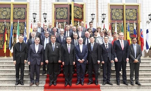 Chinese State Councilor and Foreign Minister Wang Yi meets with the diplomatic envoys to China from the European Union and 27 of its member states in Beijing, capital of China, May 17, 2019.(Photo: Xinhua)