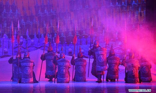 Chinese classic dance drama "Tales of the Silk Road -- Dunhuang, My Dreamland" is performed at the Lanzhou Concert Hall in Lanzhou, capital of northwest China's Gansu Province, May 17, 2019. (Xinhua/Fan Peishen)
