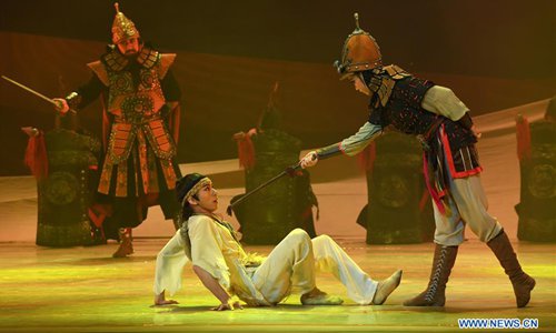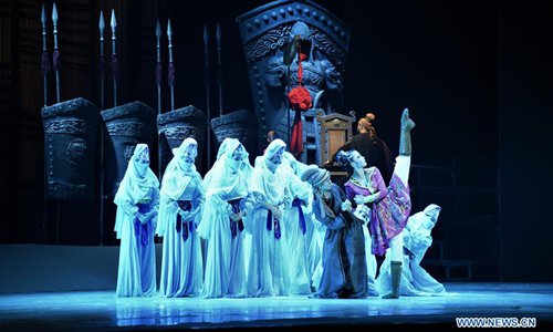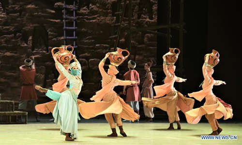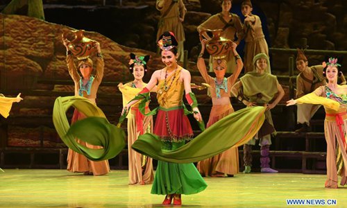 Chinese classic dance drama "Tales of the Silk Road -- Dunhuang, My Dreamland" is performed at the Lanzhou Concert Hall in Lanzhou, capital of northwest China's Gansu Province, May 17, 2019. (Xinhua/Zhang Rui)