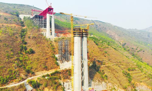 Construction of Chinese Yuanjiang Railway Bridge in Southwest China's Yunnan is to be completed in June 2020. Photo: Zhang Dan/GT
