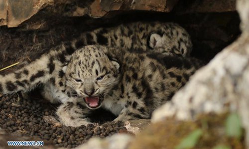 Photo taken on June 16, 2017 shows snow leopard cubs in bushes in Gaduo township of Chengduo county under Yushu Tibetan Autonomous prefecture, Northwest China's Qinghai Province. Photo: Xinhua
