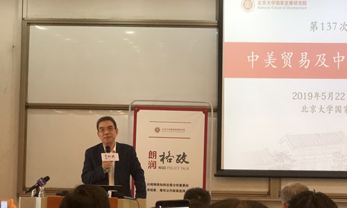 Justin Lin Yifu addresses an audience at a seminar on Wednesday at Peking University. Photo: Chu Daye/GT