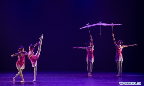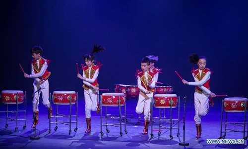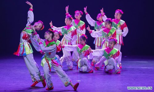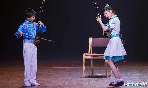 Children from the Nanjing Little Red Flower Art Troupe of China perform at the Alexander Theatre in Helsinki, Finland, May 21, 2019. (Xinhua/Matti Matikainen)