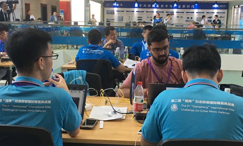 Contestants from 10 countries attack the China-proposed Cyber Mimic Defense (CMD) system at the 2nd "Qiangwang" International Elite Challenge on CMD in Nanjing, capital of East China's Jiangsu Province, on Thursday. Photo: Zhang Dan/GT