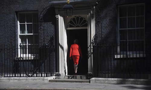 British Prime Minister Theresa May returns after speaking to the media outside 10 Downing Street in London, Britain on May 24, 2019. Theresa May said on Friday that she will quit as leader of the Conservative party on June 7, paving the way for the process of electing her successor. (Xinhua/Alberto Pezzali)