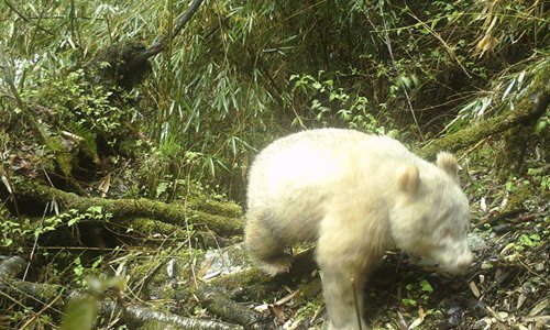 The panda is a rare all-white individual in wild pandas, which showed that the albinism genes exist in the wild population of giant pandas in Wolong, he said.