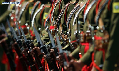 The Royal Guards of Honor wait for inspection during the ceremony of the 73rd anniversary of the Independence of Jordan in Amman, Jordan, May 25, 2019. (Xinhua/Mohammad Abu Ghosh)