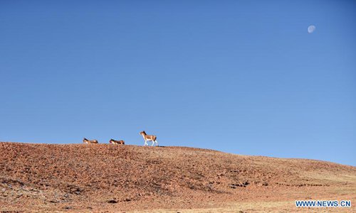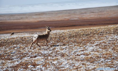 Photo taken on May 23, 2019 shows a Tibetan gazelle in Shuanghu County of Nagqu, southwest China's Tibet Autonomous Region. (Photo: Xinhua)
