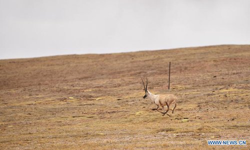 Photo taken on May 23, 2019 shows a Tibetan antelope in Nagqu, southwest China's Tibet Autonomous Region. (Photo: Xinhua)