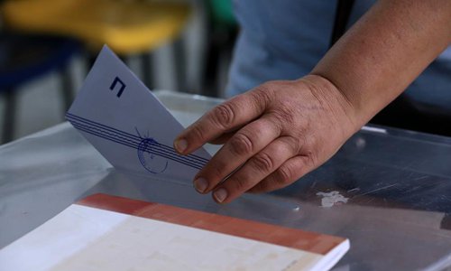 A voter casts ballot at a polling station in Athens, Greece on May 26, 2019. Voters in Greece cast their ballots on Sunday in elections to the European Parliament (EP). (Xinhua/Marios Lolos)