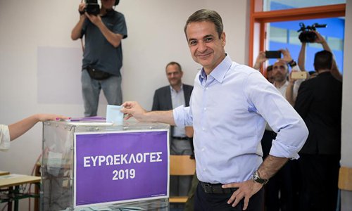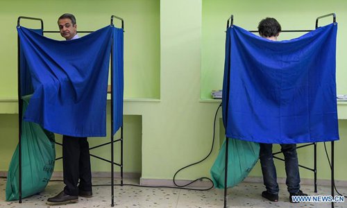 Greek main opposition New Democracy party leader Kyriakos Mitsotakis casts his vote in Athens, Greece on May 26, 2019. Voters in Greece cast their ballots on Sunday in elections to the European Parliament (EP). (Xinhua/Michalis Karagiannis)