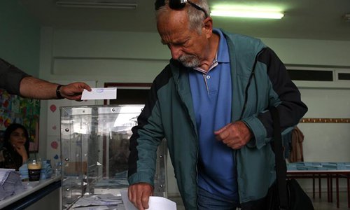 A man votes at a polling station in Athens, Greece on May 26, 2019. Voters in Greece cast their ballots on Sunday in elections to the European Parliament (EP). (Xinhua/Marios Lolos)