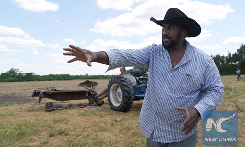 John Boyd Jr. speaks during an interview in Baskerville, Virginia, the United States, on May 15, 2019. John Boyd Jr., a fourth-generation farmer in the U.S. state of Virginia, has only planted about one fourth of his soybean crop so far this year.(Photo: Xinhua)