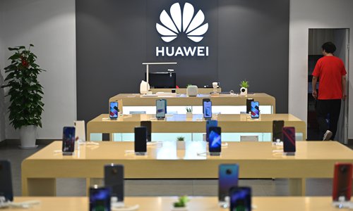 Huawei smartphones are seen in a Huawei store in Shanghai on Sunday. Huawei's new flagship smartphone — the Honor 20 Pro — was launched in London on May 21. The smartphone is scheduled to be launched in Chinese mainland on Friday. Photo: AFP