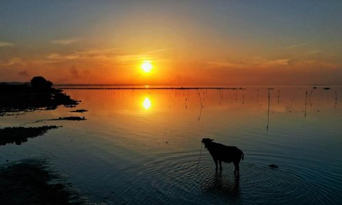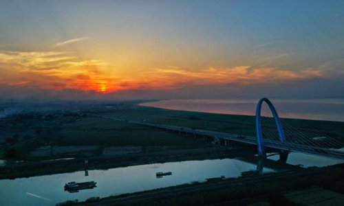 The photo taken shows the Chaohu Lake at twilight in Chaohu, east China's Anhui Province. (Photo: China News Service/Li Bin)
