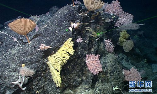 The submersible Discovery, attached to China's research vessel the Kexue has detected a coral forest in the Mariana Trench on Tuesday. Photo: Xinhua News Agency