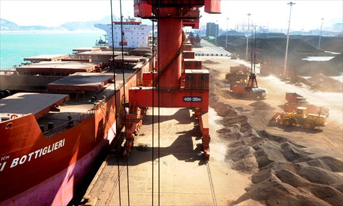 A ship unloads rare-earth metals at the port of Lianyungang, East China's Jiangsu Province. Photo: IC