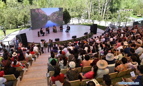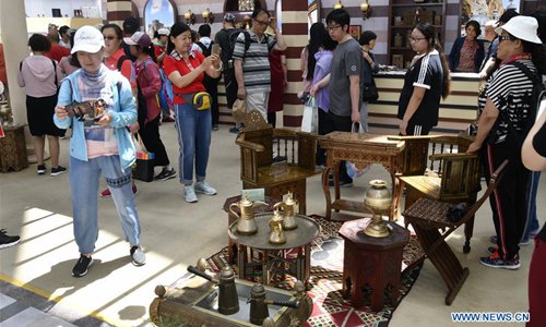 People visit the Syria Garden on the Syria Day of Beijing International Horticultural Exhibition in Beijing, capital of China, May 29, 2019. The Syria Day event kicked off here on Wednesday. (Photo: Xinhua)