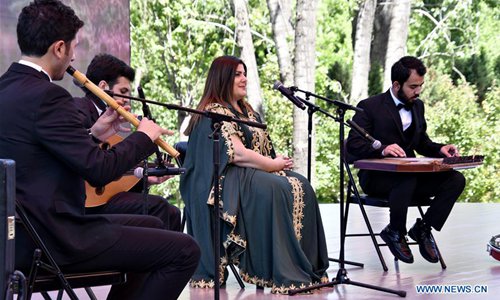 Artists perform on the Syria Day of Beijing International Horticultural Exhibition in Beijing, capital of China, May 29, 2019. The Syria Day event kicked off here on Wednesday. (Photo: Xinhua)