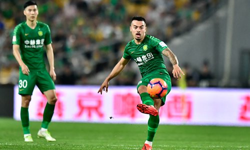 Beijing Guoan midfielder Li Ke makes a pass during the Chinese FA Cup match against Changchun Yatai on Wednesday in Beijing. Photo: IC