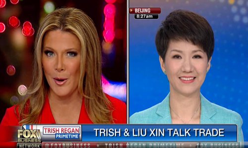 A screen shot of Liu Xin of China Global Television Network appearing on Trish Regan's show on Fox Business Network on Thursday Beijing time Photo: IC