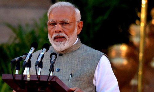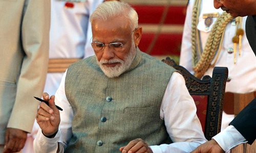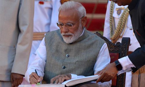 Indian Prime Minister Narendra Modi attends his swearing-in ceremony at the Presidential Palace in New Delhi, India, May 30, 2019. Narendra Modi was sworn in for a second term as the country's prime minister on Thursday. (Xinhua)