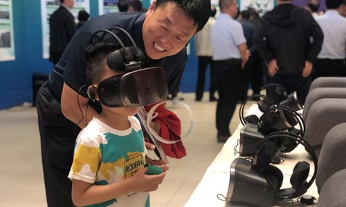 A child tries a VR device in Tuquan County, north China's Inner Mongolia Autonomous Region, June 1, 2019. Various activities are held across the county to celebrate the International Children's Day, which falls on Saturday. (Xinhua/Ha Linuo)