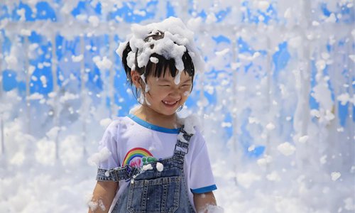 A child participates in a bubble run at Beijing Garden Expo Park in Beijing, capital of China, June 1, 2019. Various activities are held across the county to celebrate the International Children's Day, which falls on Saturday. (Xinhua/Liu Xianguo)