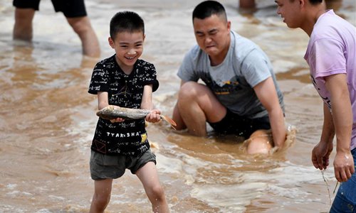A child catches a carp during a carp cultural event in Zhengzhou City, central China's Henan Province, June 1, 2019. Various activities are held across the county to celebrate the International Children's Day, which falls on Saturday. (Xinhua/Li Jia'nan)