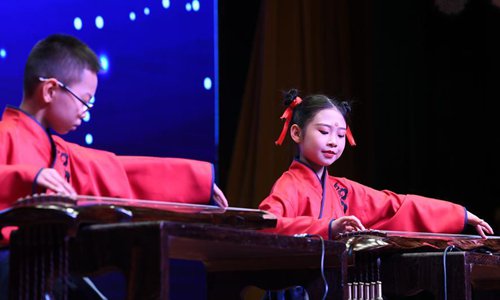 Children play Guqin, a seven-string traditional Chinese instrument, at Taiyuan Library in Taiyuan City, north China's Shanxi Province, June 1, 2019. Various activities are held across the county to celebrate the International Children's Day, which falls on Saturday. (Xinhua/Yang Chenguang)