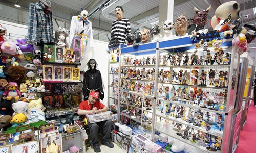 Anime cartoon characters are seen on sale at the 2019 Comic Con in Warsaw, Poland on May 31, 2019. (Xinhua/Jaap Arriens)