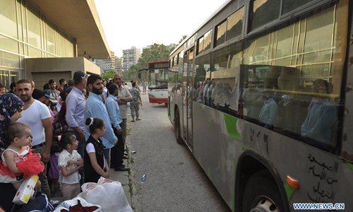 Syrian refugees are to take buses to return to their homeland in Lebanon's northern city Tripoli, on June 1, 2019. About 621 Syrian refugees, who gathered in different areas in Lebanon including Nabatieh, Tripoli, Beirut and Bekaa, returned to their homeland on Saturday. (Xinhua/Khalid)