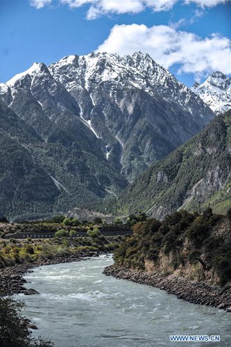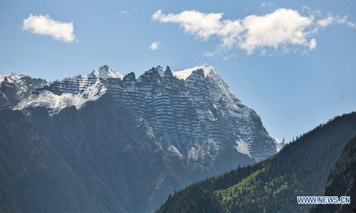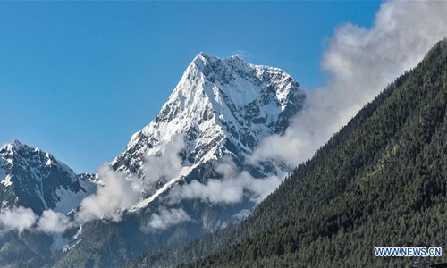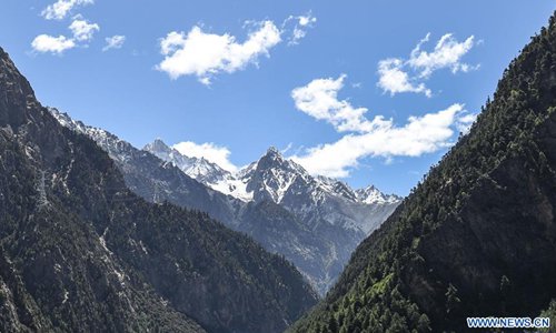 Photo taken on June 1, 2019 shows the snow mountain in Bomi County, Nyingchi of southwest China's Tibet Autonomous Region. Bomi County is known for its snow mountain and glaciers. (Xinhua/Jigme Dorje)