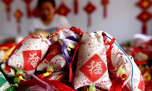 Sachets for the upcoming Chinese traditional Duanwu Festival are seen at a factory in Yuncheng, north China's Shanxi Province, on June 1, 2019. Duanwu Festival, also called Dragon Boat Festival, is traditionally celebrated on the fifth day of the fifth month on Chinese lunar calendar. (Xinhua/Cui Songliang)